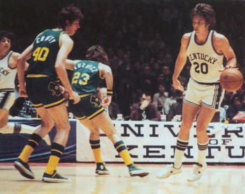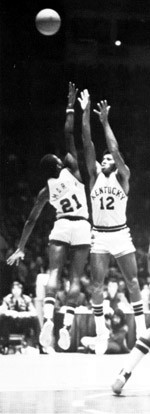 Besides the inside play, Kentucky was also able to convert off their press for some easy baskets. Said Grevey "In the beginning they were beating the boards to death and we were walking it up the floor and playing their game. But the press got us five or six quick baskets and seemed to give us our spunk. We just try to trap in the corner and force a hurried pass. It might only work three or four times out of 10, but everytime is a basket. Our substitutes really picked us up."