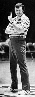 The following year, the new face as head coach was on the Kentucky sidelines. Joe B. Hall was promoted after Rupp was forcibly retired after an amazing 41 seasons. Hall believed in a power game and in order to accomplish this, had instituted a strength and conditioning program, the likes of which had never been seen previously in college basketball. This emphasis naturally led to more physical and rugged games, a trademark of many of Hall's teams.