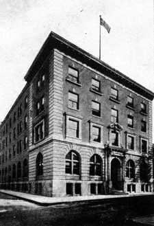 JPS Note: The Armory was an annex to Barker Hall, on the opposite flank of the original gymnasium. By 1910, increased demand for the gymnasium threatened the existence of organized basketball at the school. For a short time, the men's basketball team was abolished by the faculty to make room for other activities. This decision was quickly reversed after a compromise was worked out whereby maintenance staff at the University set down a wooden floor in the Armory for use by the basketball squad.