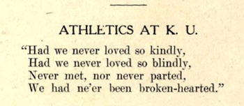 Both of these articles mention by name K.U. stars of the day, and both provide a vivid description of the time period and reflect the school spirit and enthusiasm for sports at the school. | ||||||||||||||||