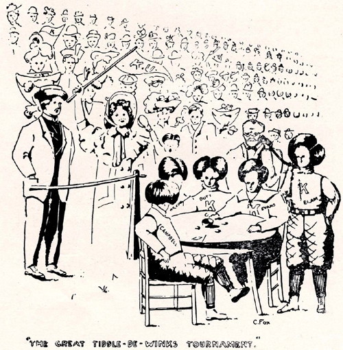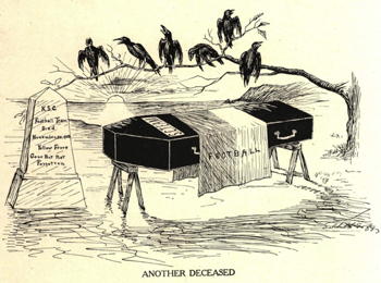 The decision to withdraw from intercollegiate athletics was met with great disappointment from the K.U. student body. A mock funeral was held on the K.U. athletic field, while supporters of the fallen program hoped for "a resurrection." The Crimson yearbook showed a cartoon depicting a Tiddlywinks Tournament as their only option for entertainment during the long winter months.