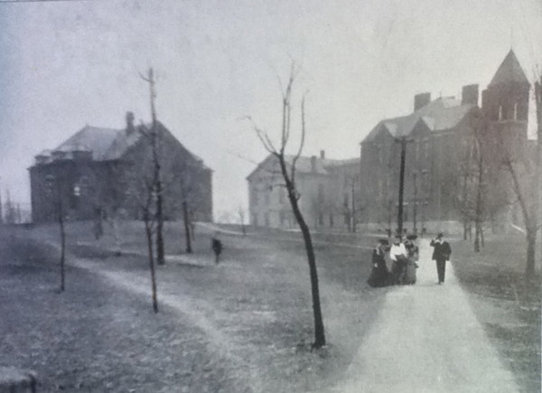 (Note the gymnasium to the far left side of the red brick main building (College of the Bible) with the white columned Morrison Hall to the right with Science Hall to the far right) |