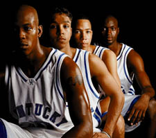 Seated:  Keith Bogans, Todd Tackett, Saul Smith, Head Coach Orlando "Tubby" Smith, Steve Masiello, Desmond Allison, J.P. Blevins