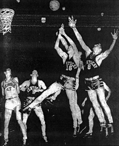 The blue-clad lads from Old Kaintuck came back in the second half with an improved man for man defense that kept Menke and company at a distance, and the Illini could not match the Southeastern Conference kings at long range bombardment.
