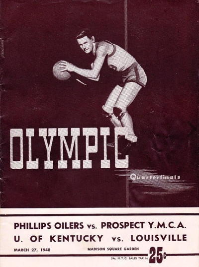 Alex Groza (#15) fights Louisville's jack Coleman (#16) for a rebound while Wah Wah Jones (#27) looks on