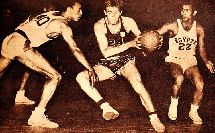 The latter combination, starting the second half with a margin of 32-10, was in turn relieved late in the game by the original U.S. team with the count standing 52-25. Barksdale had played in the second array in the second half in place of Boryla.
