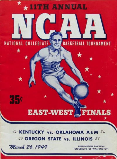 SEATTLE, March 27, 1949 -- Back to the Bluegrass state goes the national collegiate basketball championship, which was won by a great University of Kentucky team that broke the heart of the fighting Oklahoma Aggies last night, 46-36.