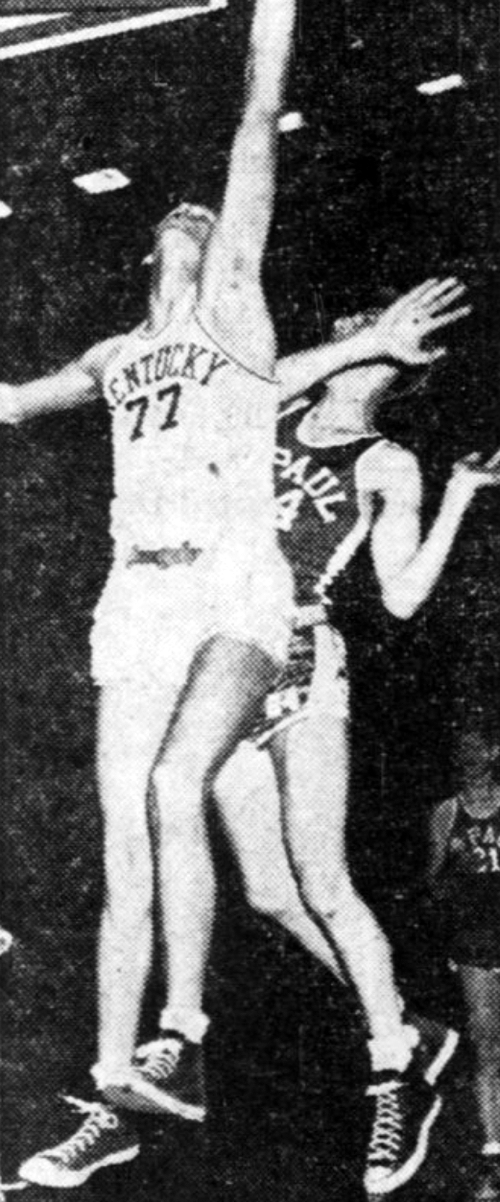 Bill Spivey (#77) reaches for a rebound in front of DePaul's Bob Kampa