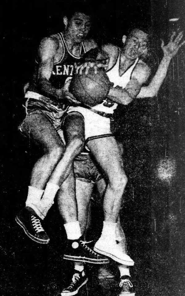 Cliff Hagan and Auburn's J.P. "Bubber" Farish fight for a rebound.