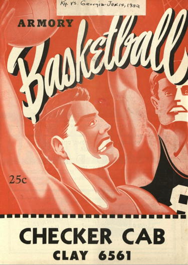 Billy Evans and Skippy Whitaker (#32) reach for the ball. Also seen are Georgia's Kermith Hall, Cliff Hagan, Frank Ramsey and Georgia's Johnny Carson