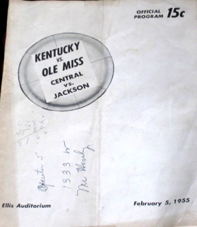 Mississippi's Denver Brackeen (#22) drives around teammate Wayland Inman who holds off UK's Phil Grawemeyer, while Jerry Bird (#22) looks on