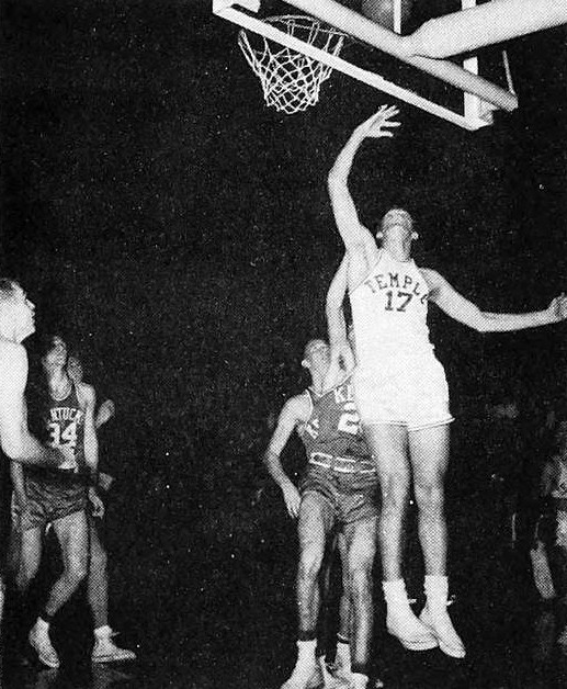 Johnny Cox is surrounded by Temple's Dan Fleming and Pete Goss