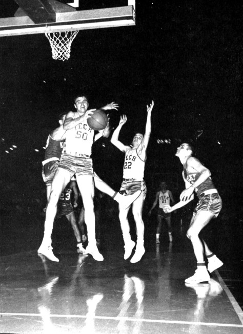 Tech's Frank Inman (#50) grabs a rebound