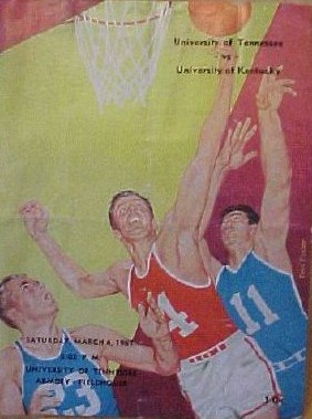 Tennessee's Bobby Carter (#22) attempts to score after UK's Dick Parsons (#50) fell to the ground and Roger Newman (#42) can only watch