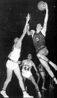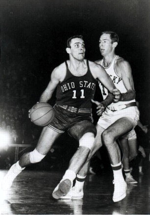 Ohio State's Jerry Lucas (#11) attempts to drive past Ned Jennings