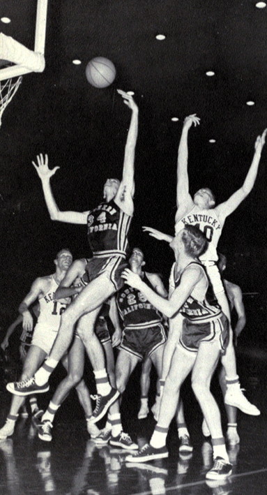 USC's John Rudometkin (#44) grabs a rebound in front of teammate Ken Stanley (#25) and UK's Cotton Nash