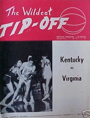 Virginia's Anthony Laquintanto hits the ball toward a teammate while UK's Carroll Burchett (#40), Cotton Nash and Roy Roberts try to intercept