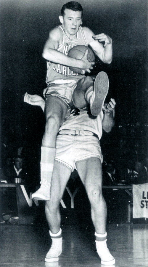 Cotton Nash (#44) outfights teammate Don Rolfes (#40) for a rebound, while UNC's Billy Cunningham (#32) looks on
