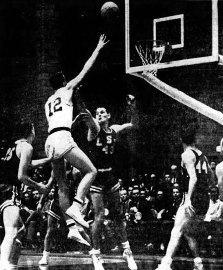Ted Deeken (#12) shoots over LSU's Dick Maile (#43)