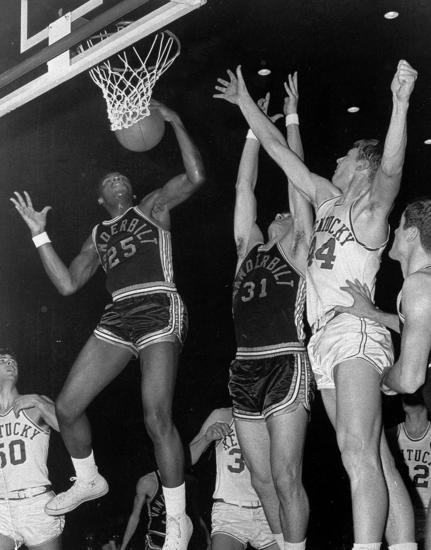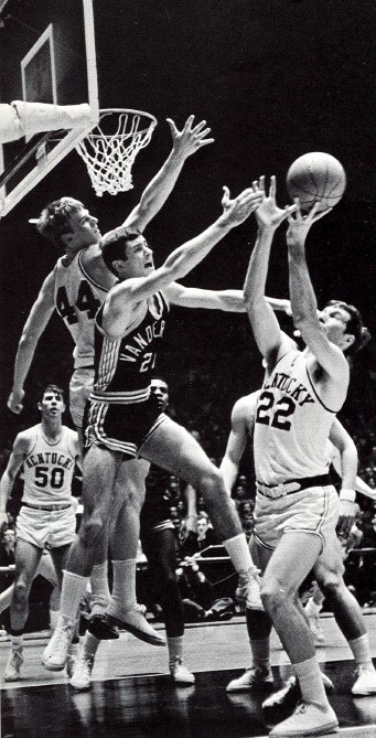 Vanderbilt's Perry Wallace (#25) grabs a rebound in front of Dan Issel (#44)