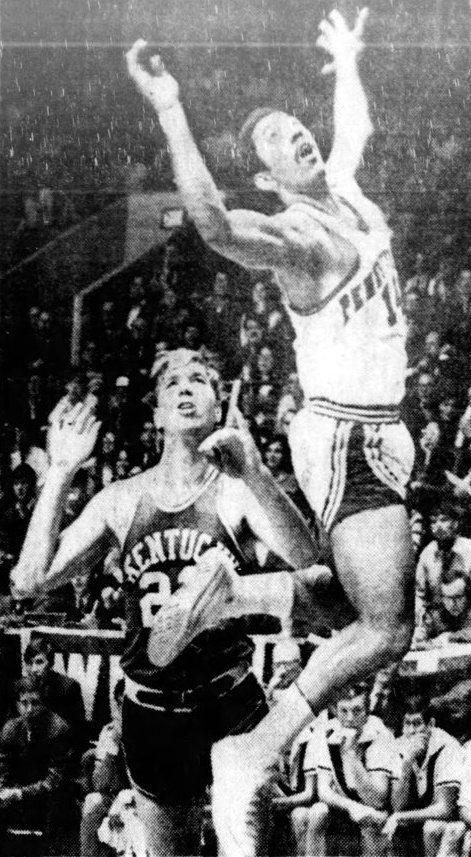 Penn's Steve Bilsky (#10) fouls Kentucky's Phil Argento as he drives to the basket