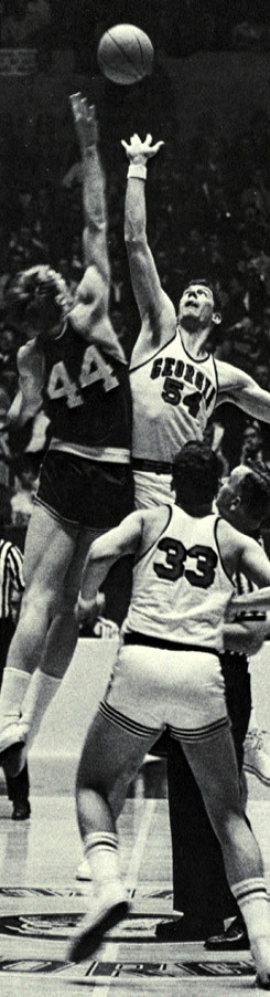 Dan Issel (#44) and Georgia's Bob Lienhard (#54) tip off
