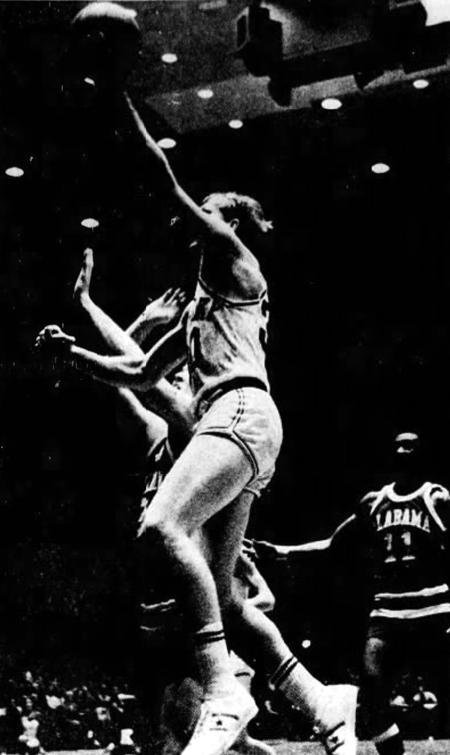 Alabama's Wendell Hudson (#20) grabs a rebound over teammate Alan House while Larry Stamper (#22) and Tom Parker surround them