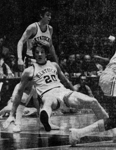 Jimmy Dan Conner (#20) takes a spill while Kevin Grevey is in the background