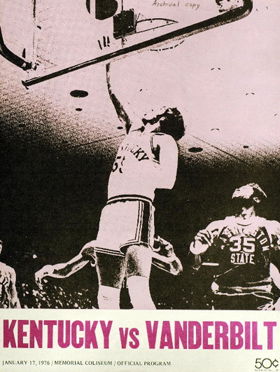 Vanderbilt's Joe Ford (#24) drives for a layup while guarded by Jack Givens (#21) and Mike Phillips (#55)