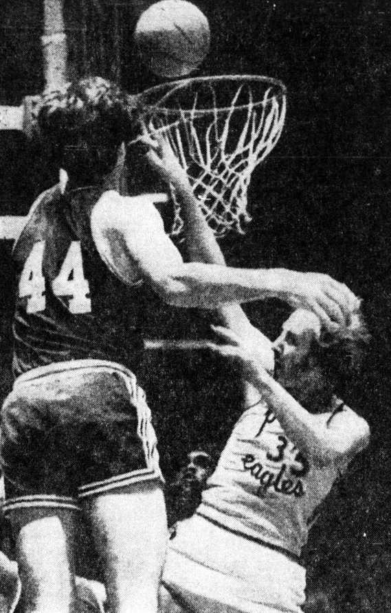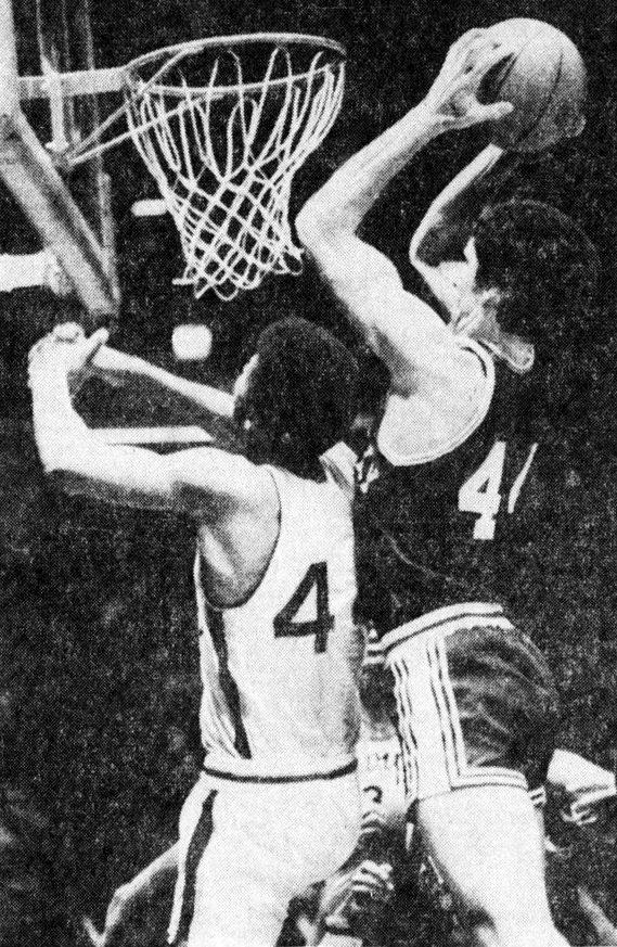 Bob Fowler rebounds over Niagara's Vern Allen but is called for a foul