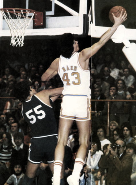 Kevin Nash (#43) rebounds over Mike Phillips (#55)