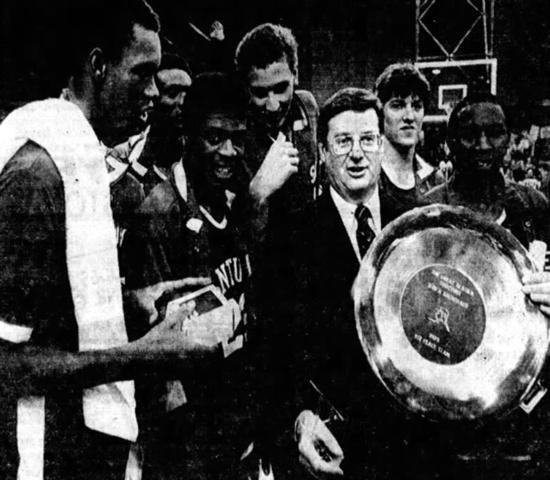 Lavon Williams (#52) rebounds in front of Iona's Jeff Ruland (#43)
