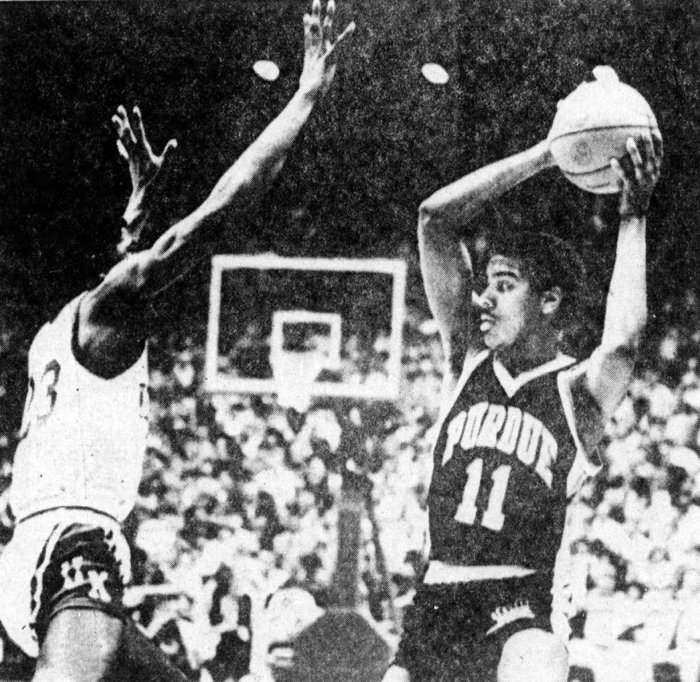 Former Boilermaker Kyle Macy (#4) defends against Purdue's Brian Walker