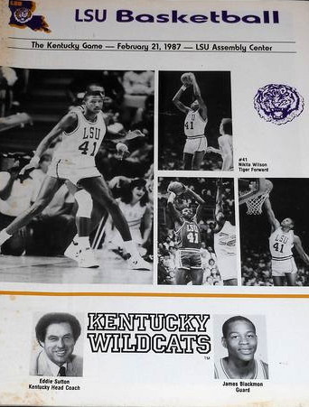 Rex Chapman (#3) shoots over LSU's Bernard Woodside (#30)