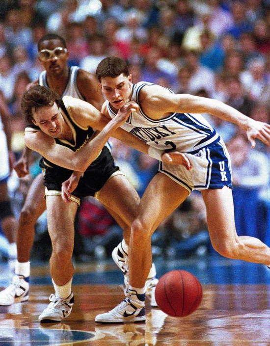 Rex Chapman and Vandy's Barry Goheen fight for the ball
