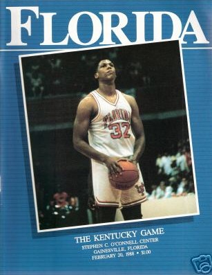 Florida's Vernon Maxwell (#11) soars for a dunk while Rex Chapman (#3) can only watch