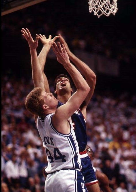 Rob Lock (#44) defends against Rony Seikaly