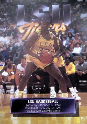 John Pelphrey is stuck between LSU 7-footers Shaquille O'Neal (#33) and Stanley Roberts (#53)