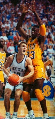Richie Farmer (#32) reaches in vain for the ball held by O'Neal