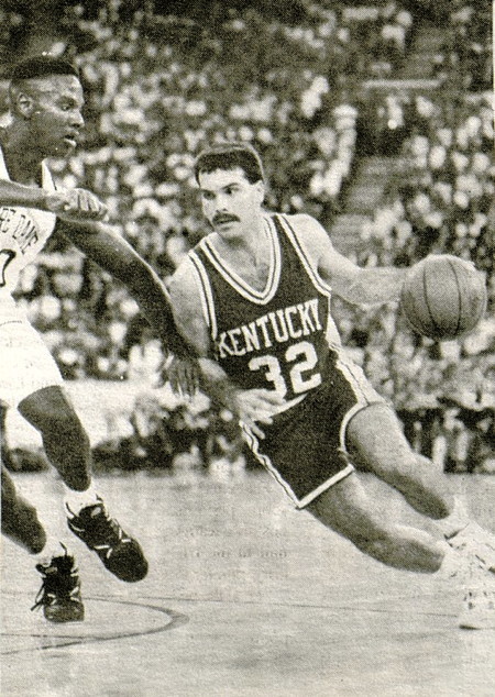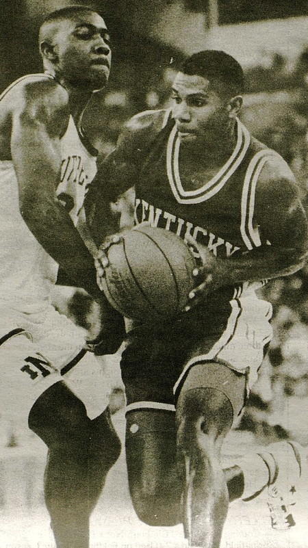 Richie Farmer (#32) drives past LaPhonso Ellis
