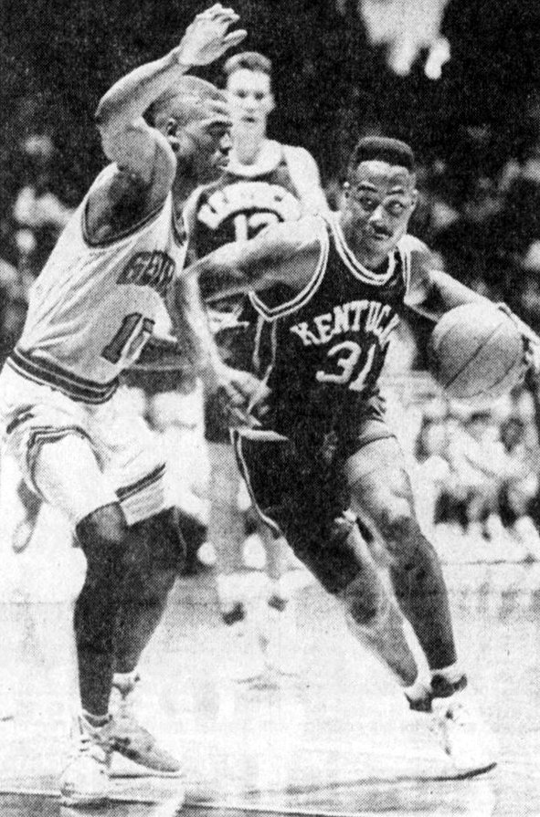 Dale Brown (#31) drives past Georgia's Shaun Golden