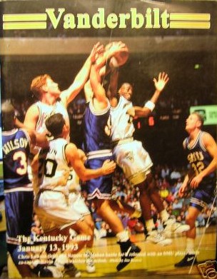 UK started off moderately well, but Vanderbilt hung tough and soon gained a lead around midway through the first half. Kentucky's press sounded largely ineffective against the Commodores, and the Cats made numerous pointless fouls which really hurt them since Vandy was very good from the free-throw line (they only missed 7 out of 43!). Mashburn was held to 14 points and although UK connected on 14 3-point shots, it missed 20. UK only shot 41% for the game, which hurt, and many of its shots were fairly bad selections. Its height advantage was largely neutralized - neither Dent, Riddick, nor Mashburn were significant factors in this game. Ford played well offensively, hitting on 6 for 8 3 pointers (his only field goals), but he was in needless foul trouble all night and was not nearly as effective defensively.