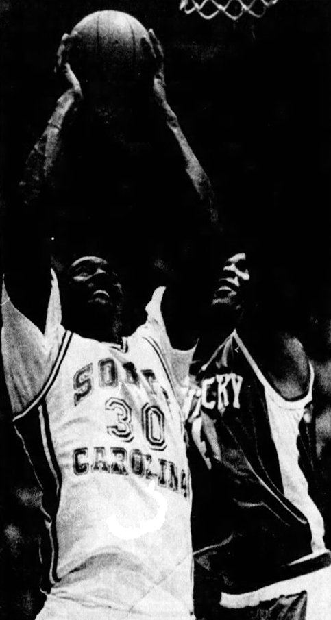 South Carolina's Edmond Wilson (#30) goes up for a shot against Rodney Dent
