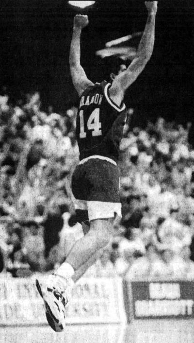 Jeff Brassow jumps for joy after scoring the game-winning tip-in as time expired