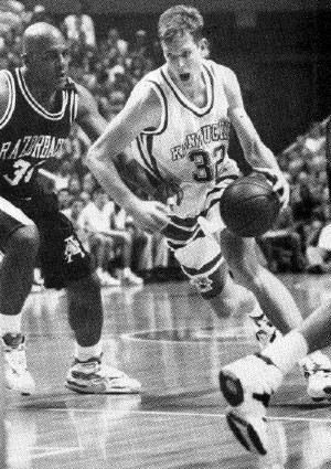 Despite fears to the contrary, UK did moderately well at the center spot. Jared Prickett and Gimel Martinez scored 11 points, and Prickett grabbed 20 rebounds. Prickett appeared to score easily on those few occasions when he received the ball down low. Most of Martinez's scoring, however, came late in the game, and Riddick was almost a non-factor (his free throw line problems hurt the team). Neither Travis Ford nor Tony Delk was responsive from the 3 point line, going a combined 4-22. Chris Harrison came in briefly to shoot free throws for Martinez, who had to leave the game temporarily due to bleeding (Chris hit both). Sheppard didn't make it into the game, and McCarty's major contribution was a turnover (getting up in the air and having no one to pass to).