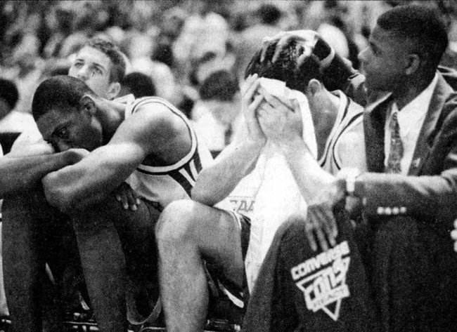 Arizona Coach Lute Olson was asked by Marquette Coach Kevin O'Neill how to break Kentucky's press. Olson told O'Neill to instruct his point guard (Tony Miller) to dribble directly at the big man in any 2-man UK trap. Miller managed to do this the entire game, rendering the trapping press much less effective than it usually was.