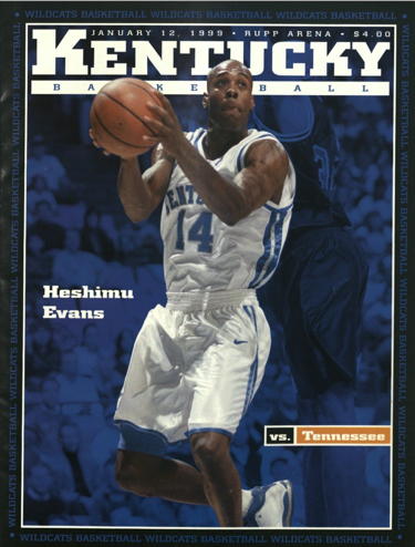 The Cats got the opening tip, and breezed to an early 8-2 lead in a slow moving contest. Tennessee caught up after a slow start (making only 1 of their initial 9 FGs), but their early rebounding capability was evidence as they had 5 shot attempts in their initial possession. They brought it to 10-7 at the 1st TV timeout, and after a Hathaway layup and Victor putback, they actually led 11-10. Another Victor layup made it 13-10, and the Wildcats appeared rather lethargic and determined to score 1-on-1 rather than by team play. Scott Padgett hardly touched the ball early on. UK went back on top 14-13 after a Magloire drive and dunk and a Bradley tipin of an Evans fastbreak miss. But a Black unguarded 3 made it 16-14 UT. Turner tied it on a 16 footer, but then Wharton hit a long 2 after Evans fell down, leaving him wide open. Magloire made a single FT to close to within 18-17, but Wharton hit a 3 and it was 21-17 Tennessee. Bradley scored a layup on a break, but then Black made a layup for a 23-19 Vol edge. Tony Harris drove for a layup and a 25-19 lead in the half's waning minutes. Turner had a shot goaltended, after Padgett had a weak shot blocked into the backcourt. UK had the ball in the final seconds, but used very poor time management, and didn't get off a shot. It was 25-21 at intermission. The Cats had missed all 6 3 pt tries in the opening half, making only 1 shot outside the paint. Tennessee made only 6 of their initial 30 FG attempts.