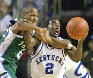 Kentucky made that clear from the start as Prince and Jules Camara had each scored four points to stake their team to an 11-2 lead. Smith called upon the bench just under the 15:00 mark, and Carruth, Marquis Estill and Chuck Hayes each responded with baskets. Estill, a center, and Hayes, a power forward, hit the first of UK's 16 treys on the night to make it 19-4.