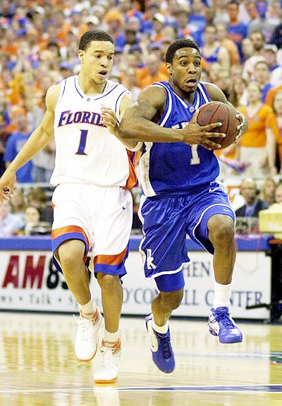 Cliff Hawkins (#1) leads the break ahead of Florida's Anthony Roberson (#1)