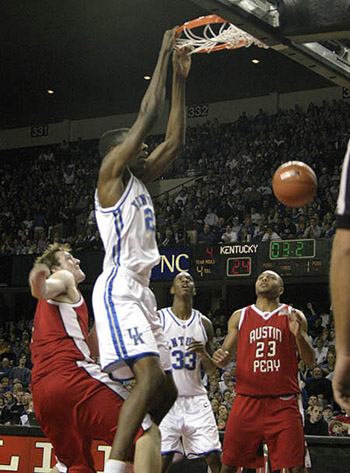 The Cats were disjointed the entire game, scoring just 26 points in the first half, including a nearly seven-minute drought during which Smith sat his starters down in an attempt to get more energy. Although UK held the Governors to just 12 first half points, poor shooting (38 percent) again had UK scuffling.